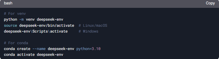 DeepSeek relies on libraries like PyTorch, TensorFlow, or Hugging Face’s transformers. Install them using pip: