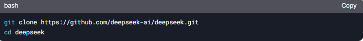 Clone the official DeepSeek repository (replace with the correct URL if available):